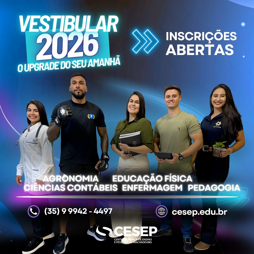 CESEP: com mais de 56 anos de tradição no ensino, colecionando conquistas e formando gerações. Oferecemos diversos cursos presenciais nas mais variadas áreas. Junte-se a nós e construa a sua trajetória de sucesso!